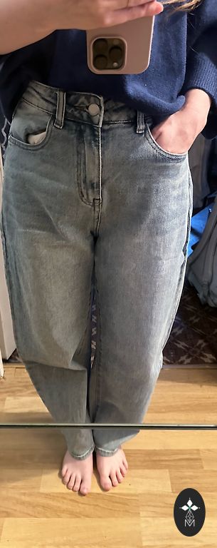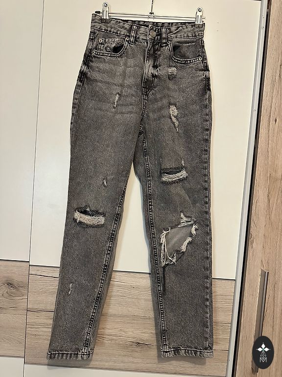 Zara sirged teksad. Defekt vöö piirkonnas (vaja õmmelda). Muidu teksad paar korda kantud.