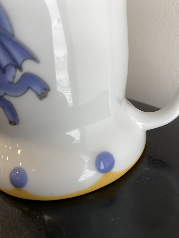H = 15 cm Ilma pragudeta, ilma täketeta, on tähtsusetud kriimustused, ühe kõrvaga on kortsud, see ei ole defekt, see on lõpetamiskoht.