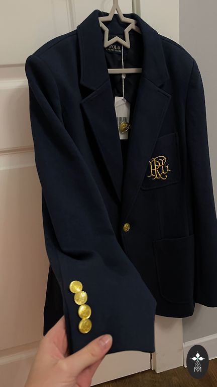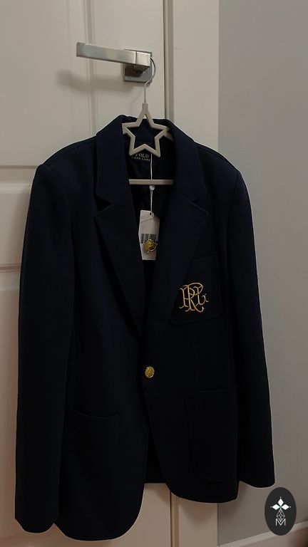 Tamsiai mėlynas švarkas su kabliu. Ilgis 50 cm.