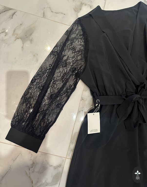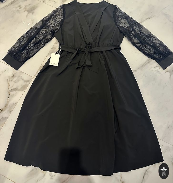 4 USA suurus/34 EU suurus. Kvaliteetselt õmmeldud, uus, mitte kaltsukas, ilusasti langeb voltidega ees ja taga, loob saleduse efekti. Koos salliga. Kleit on kollektsioonist, õhtukleidid fotosessioonideks. Müün oma. Pole kantud, ei saa öelda, kas S suurusele ka sobiks. Kui vaja täpseid mõõtmeid, küsige.