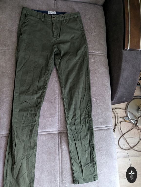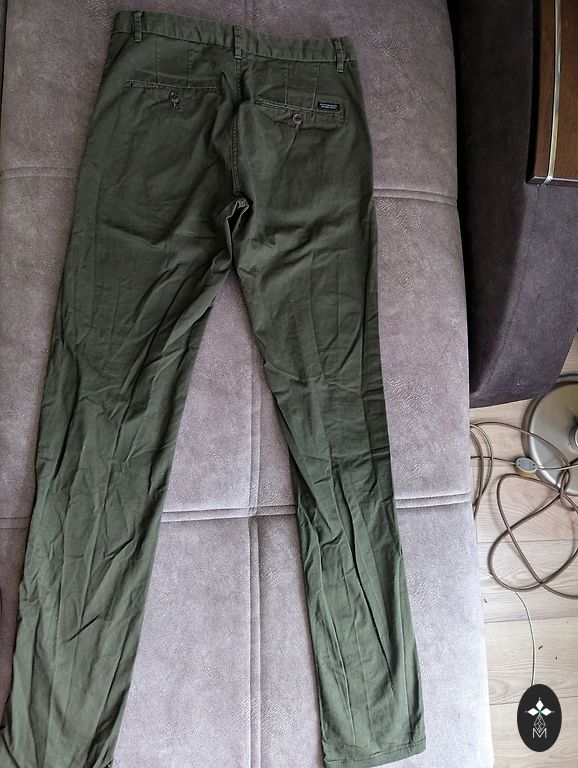 Size for one is indicated as 28x28 straight, for the other (green) simply 16, but it has an adjustable belt. Length from the waist for one is 95 cm, for the other 93 cm. When put together, the sizes are the same. Waist 36-37 cm x 2. Condition is good, no defects, washed, ironed. Inside seam length 71-72 cm. Price for both together.