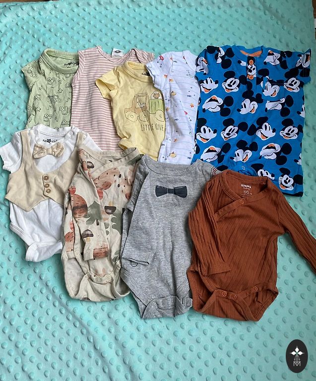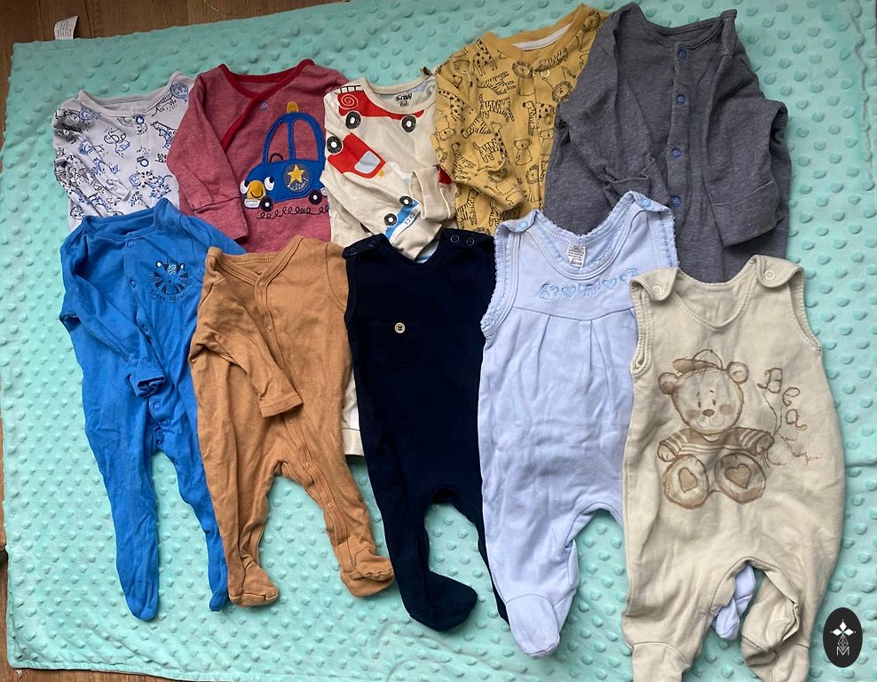 Norādīts 80. izmērs, bet es teiktu, ka vairāk der uz 74.izmēru. Drēbes labā stāvoklī vilcis viens bērns. Iespējams drēbes pirms lietošanas jāizmazgā, jo ilgu laiku stāvējušas kambarī.
