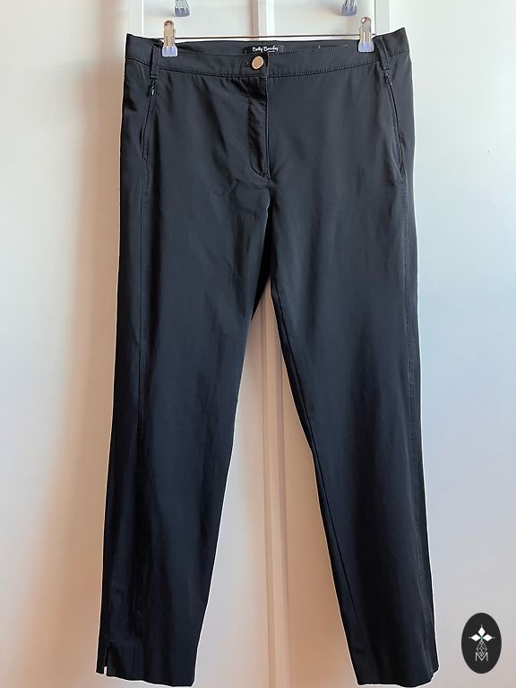 Labai gražios klasikinės kelnės su žavinga „uogele“ – juosmens zona blizgučiais, kurie kelnes padaro įdomias ir šventiškas! Tamprios.