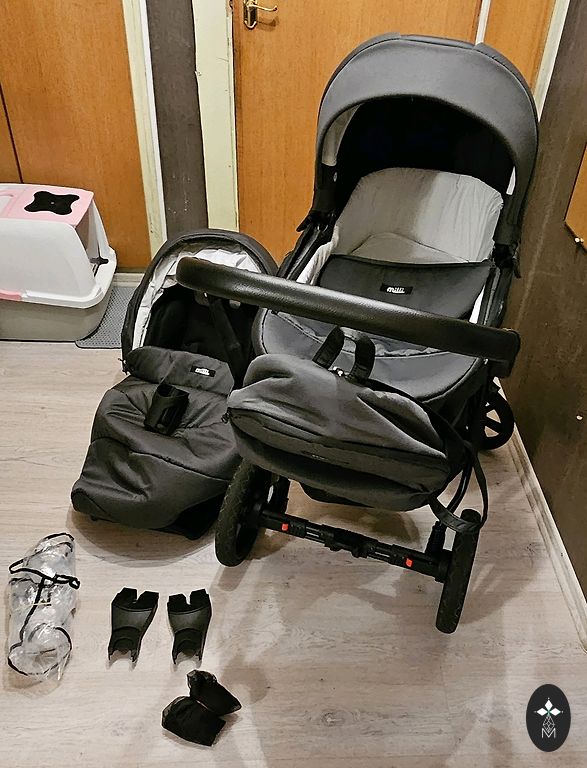 * Plašs, ietilpīgs un noslēgts iepirkumu grozs. Komplektā līdzi melns moskītu tīkls, kā arī neizmantota ietilpīga mugursoma un pārtinamais ūdensnecaurlaidīgais paladziņš. P.S. Attēlos ratu krāsa nav