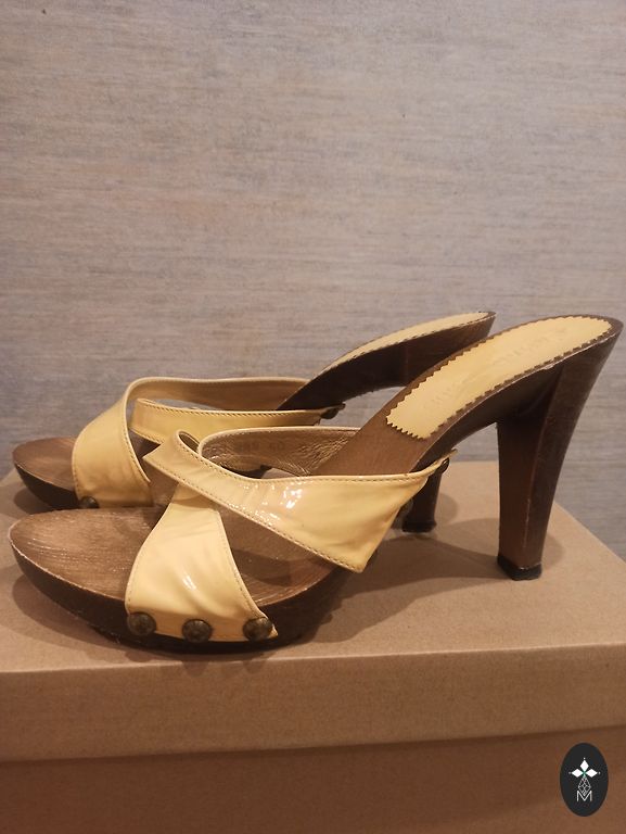 Paar korda kantud. Väga naiselik ja ilus jalas. Õrn kollane värv. Stiilne pika suvekleidiga. Kontsa kõrgus 10,5 cm. Saadan pakiautomaadiga. Bränd: Pamar Plus