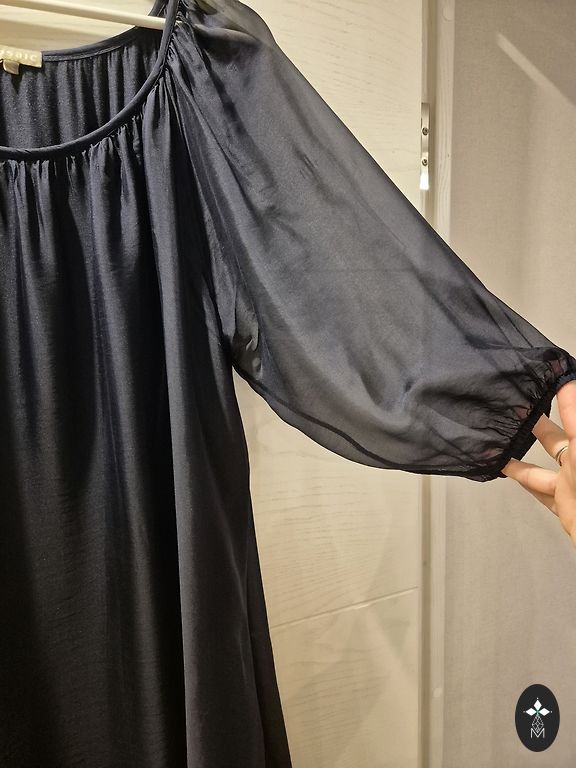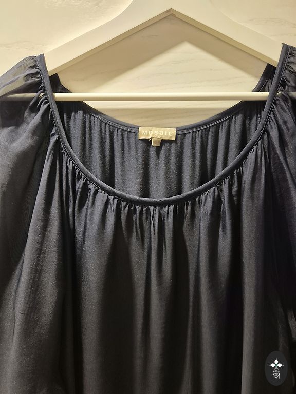 Ilma puudusteta, kantud ühe korra. Sobib suurusele 42/44. Pikkus 108 cm, rindkere 50 cm. Kaunid tiivakujulised varrukad.
