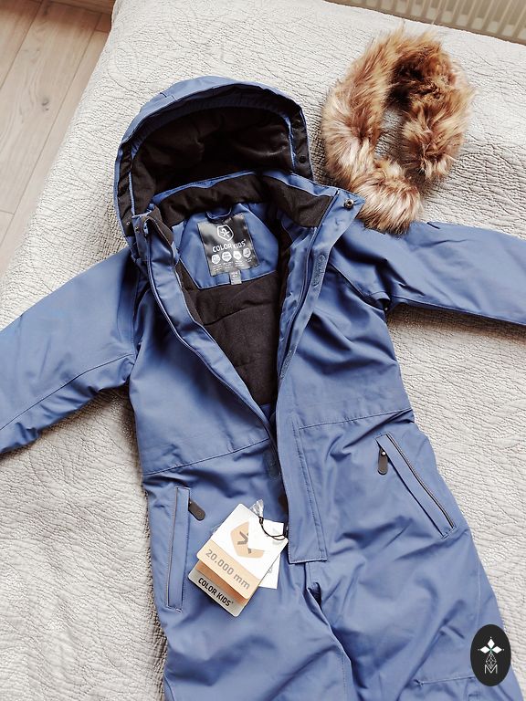 Žiemos kombinezonas, naujas 98 dydis. Siuvinėjimai ant kelių ir ant nugaros. Šiltas. Labai geras, tie kurie žino firmą, tie žino. 🙂Praeitą žiemą buvo tos pačios firmos, ir visada buvo šiltas. Aukšta apykaklė. Pirkom su nuolaida, galvodami, kad šią žiemą tiks, tačiau labai išsitempė 😇