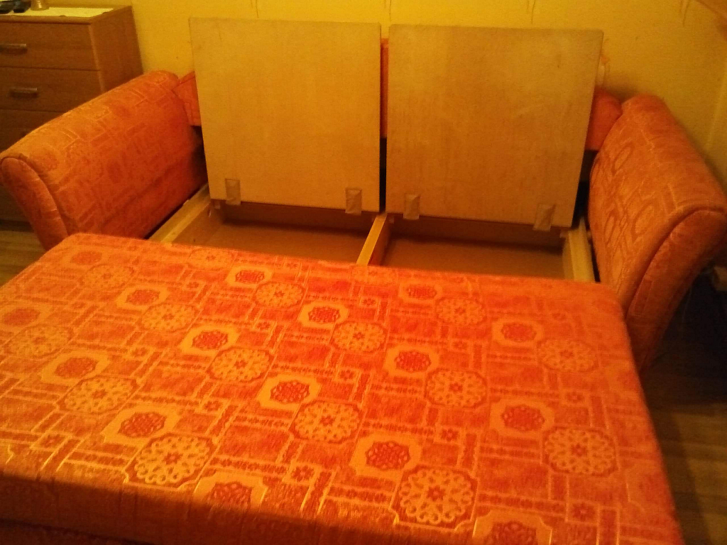 On kasutuse tunnused. Nurkades on kass küüsi teritanud. Diivan on alati seisnud soojas ja kuivas kohas. Kuna majas on allergiline inimene, on regulaarselt töödeldud Florax tolmulesta vastase vahendiga.
