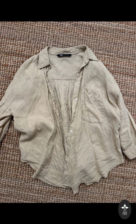 Dirbtinis šilkas, auksinės sagos ant apykaklės nugaros. Maloni perlamutrinė smėlio spalva ir moteriškas fasonas a-lya Šanchajaus hercogienė 👌 Britų prekės ženklas.
