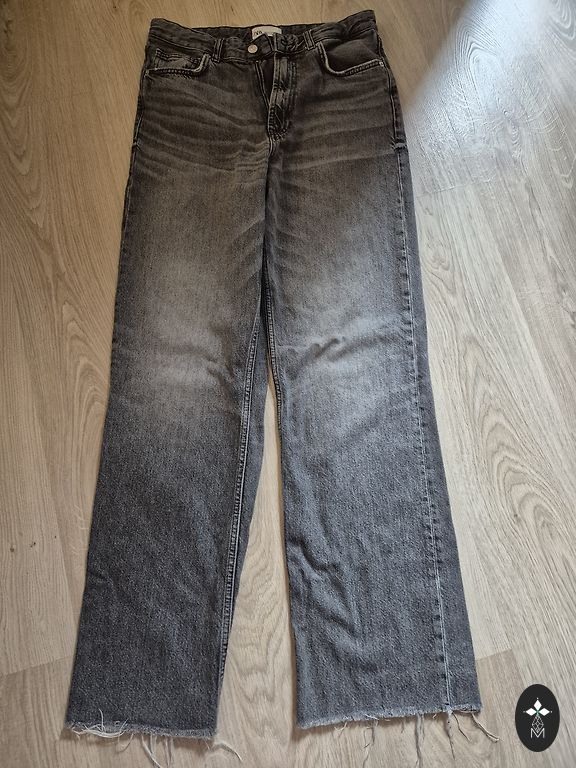 Серые широкие джинсы