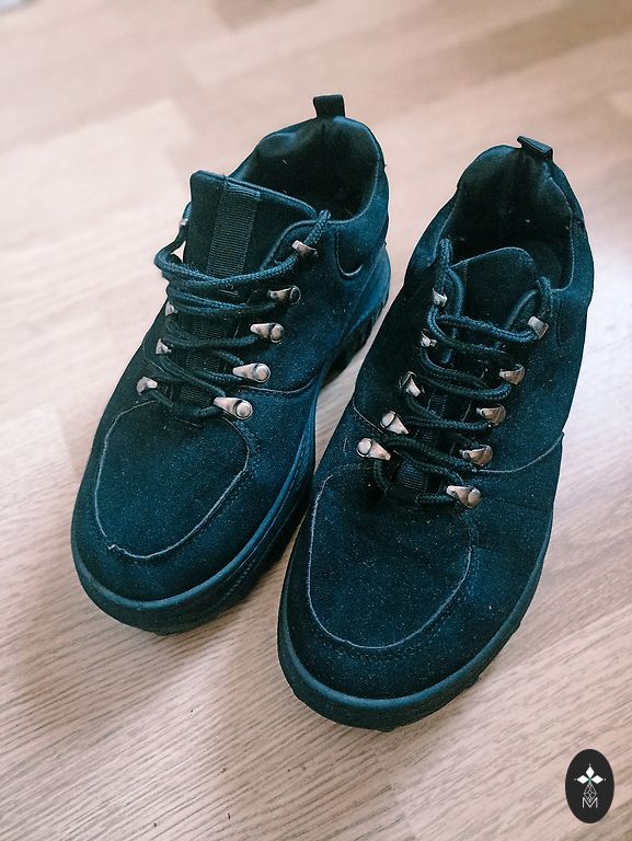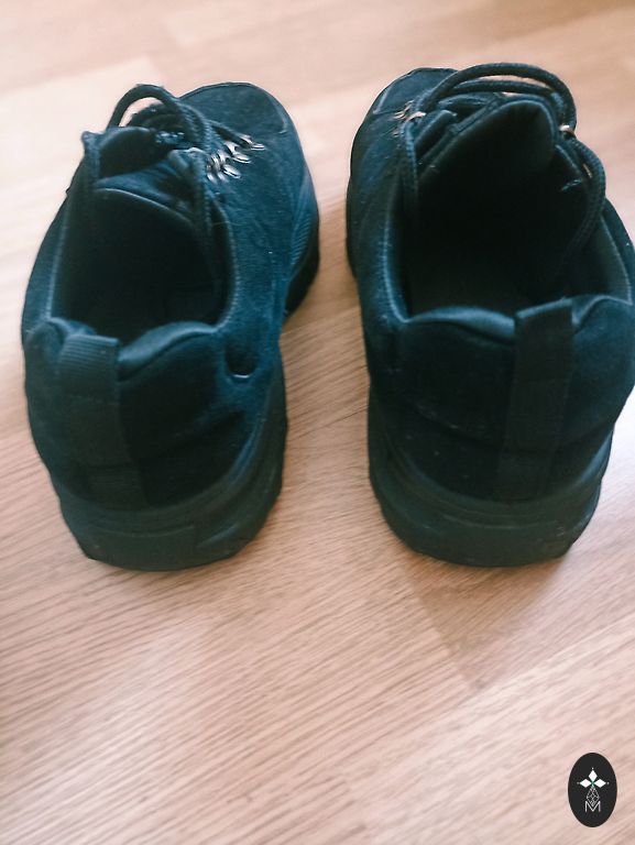 Casual footwear. Size 40 with a 25.5cm insole. There is a defect on the left shoe, missing two snap buttons.