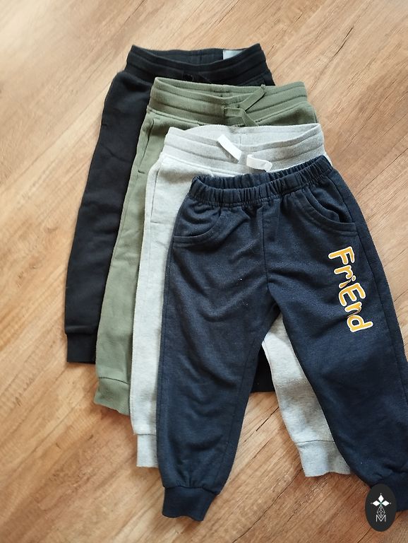Три пары брюк от Newbie, в хорошем состоянии, куплены новыми, носил один ребенок. Белые брюки на подтяжках и коричневые ажурные брюки по бирке размер 74, но визуально коричневые брюки скорее как 80. Пестрые джоггеры по бирке 68, но визуально кажется, что больше соответствует 74. Носили все