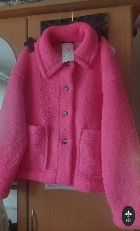 Length 110, chest up to 140, sleeve length 66, sleeve width 48, snap button closure, color beige (the picture does not show the true color), has pockets, high collar.
