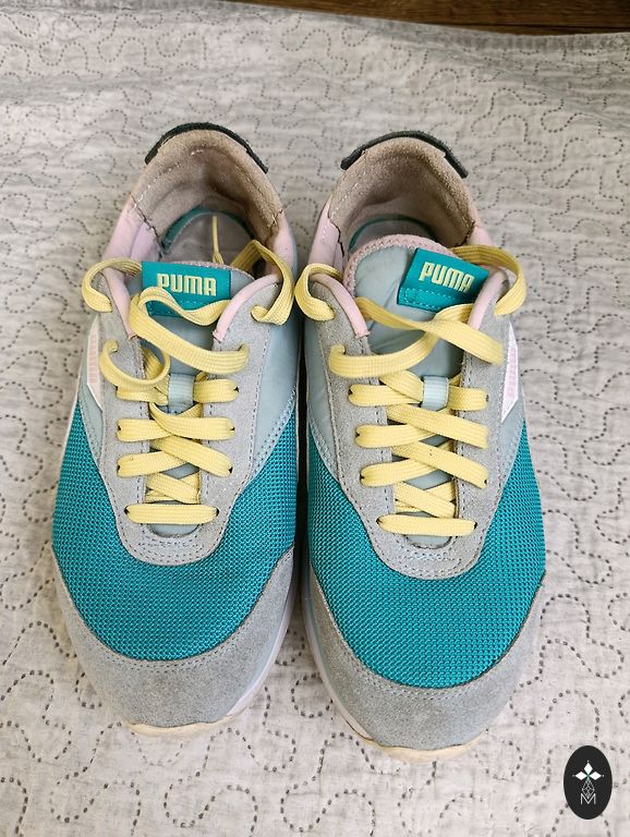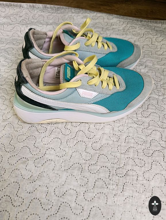 Puma jalanõud heas seisukorras. Väike defekt - ühel kingal sees väike kulumine kanna piirkonnas.