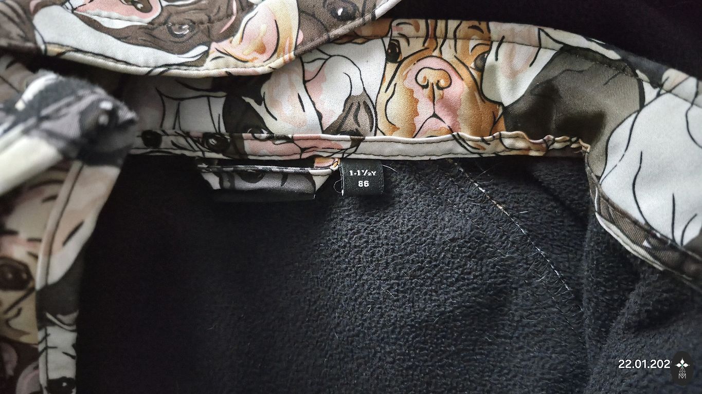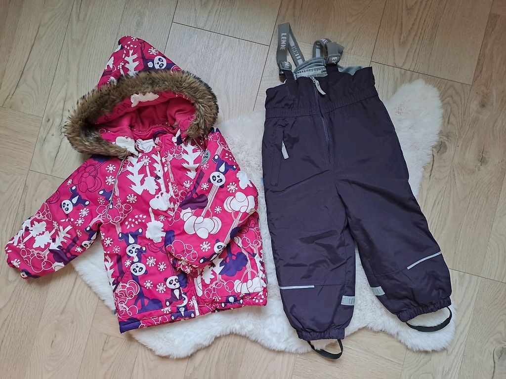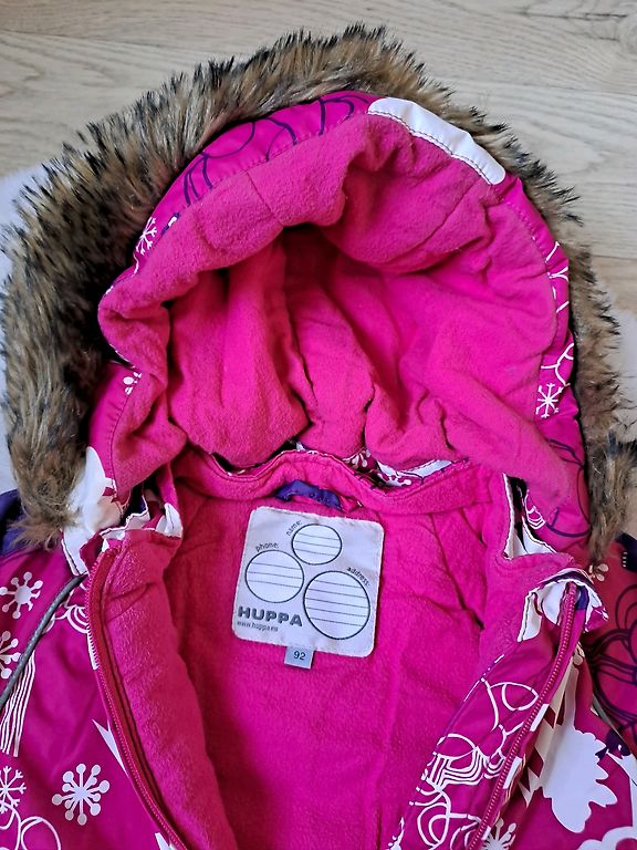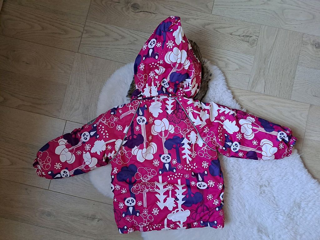 Šiltas, kelnės su reguliuojamomis sagomis, pūką galima nuimti.