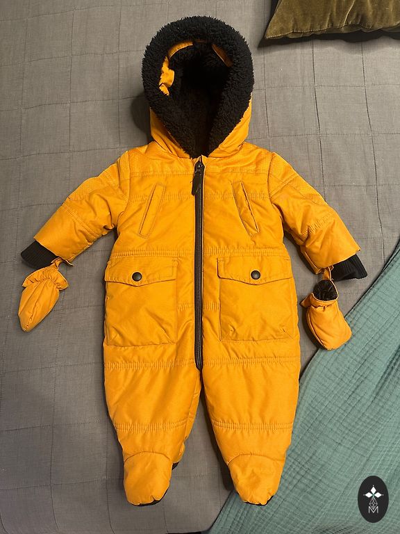 Labai kokybiškas ir šiltas kombinezonas naujagimiams. Puikiai tinka žiemiškiems pasivaikščiojimams. Kombinezonas turi specialias angas prisisegimui automobilinėje kėdutėje ir per kurias taip pat galima įsitikinti, ar vaikui pakankamai šilta ir patogu. Kombinezonas yra faktiškai naujas - uždėtas tik kelis kartus.
