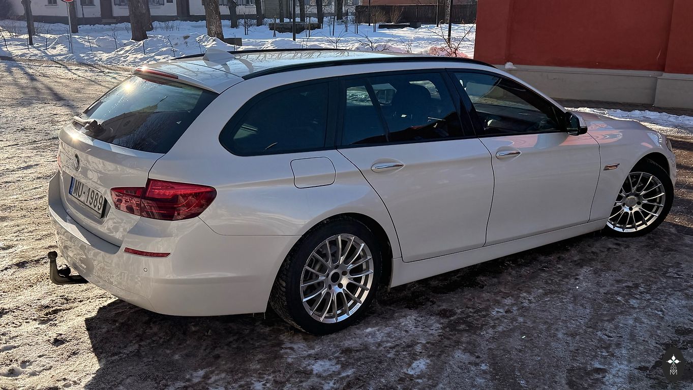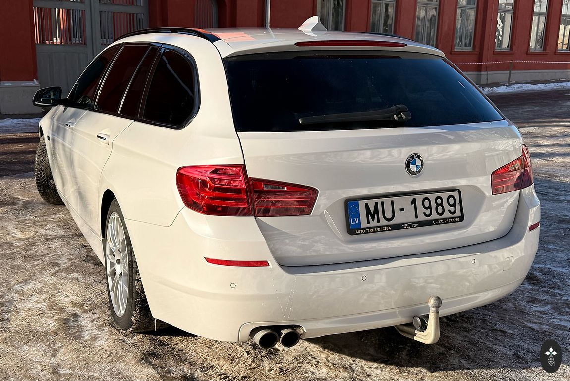 BMW 523i 130 kW, vid. benzino sąnaudos apie 9.3l/100km. TA 2027 m. sausis. Automobilis antrus metus Latvijoje, importuotas iš Vokietijos, be rūdžių. Automobilis su daug priedų: didelis ekranas, sėdynių šildymas, veikiantis ccc, el. reguliuojamos sėdynės, M-vairas, veikiantis stoglangis, juodos audinio sėdynės. Vasaros padangos ant R18 ratlankių ir kt., žiemos padangos ant R16 ratlankių. Ką tik pakeista visa važiuoklė - gale bumerangai, trumpi svirtys, plaukiojančios įvorės, h-svirčiai įvorės, priekyje