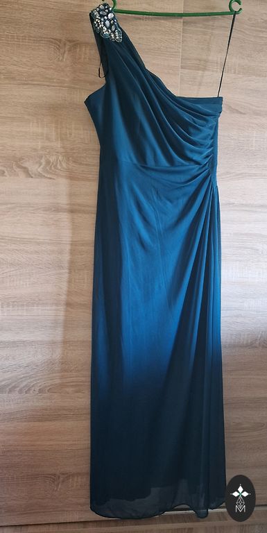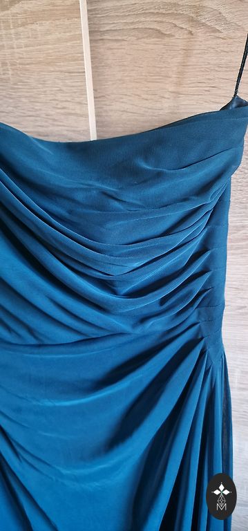 Nauja, prabangi aksominė suknelė su gumomis ties liemeniu. Spalva gyvenime gražesnė nei nuotraukoje. Ilgis - 140 cm. Atstumas matuojant 66 cm x2 po pažastimis, neištempiant liemens 35 cm x 2, galima ištempti iki 53 cm x 2. Pridedama ir elastinga dirželė.