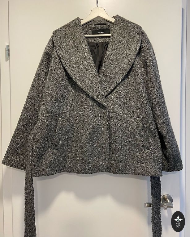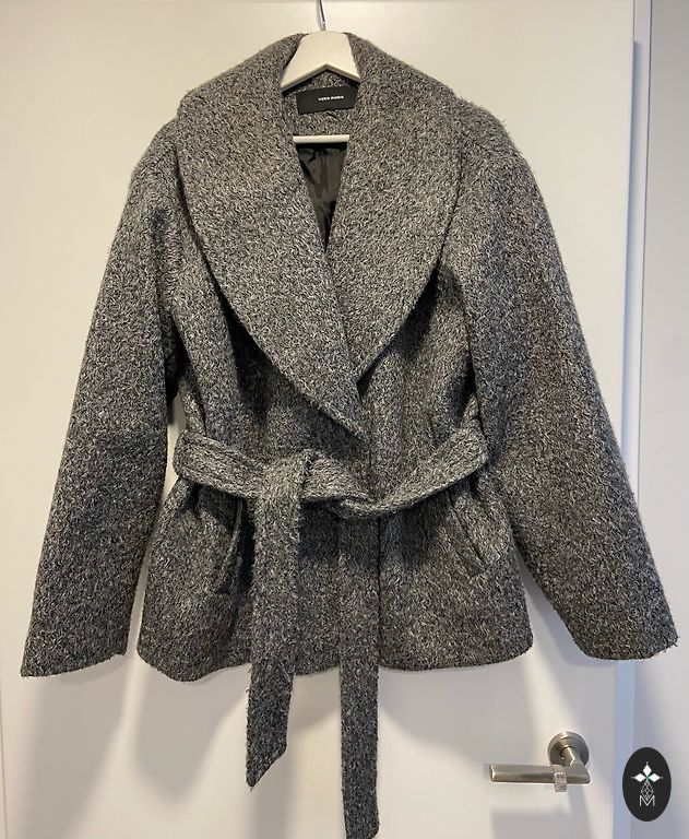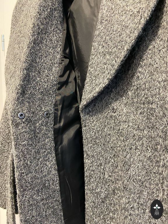 Minkštas ir labai šiltas žieminis švarkas, didelės šiltintos kišenės, yra vidinė kišenė su užtrauktuku, galima suveržti ties juosmeniu. Kelis kartus dėvėtas, vis dėlto nėra mano modelis. Plotis 63 cm ilgis 73 cm Gamintojo dydis L, galėtų tikti ir M bei XL, priklauso nuo to, kiek oversize norima. Sorona lengvas ir šiltas užpildas. Sunku pagauti tikrą atspalvį, švelniai pilka spalva. !!! NĖRA COS !!!