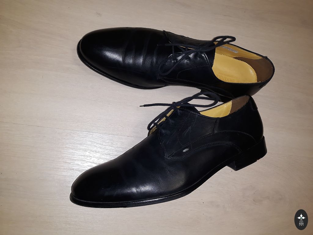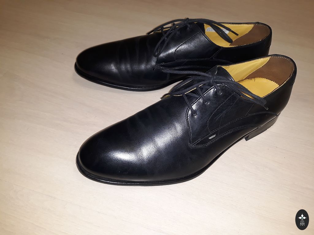 Туфли надевались всего пару раз. Единственный дефект - небольшая царапина на левой туфле. В остальном туфли как новые.
