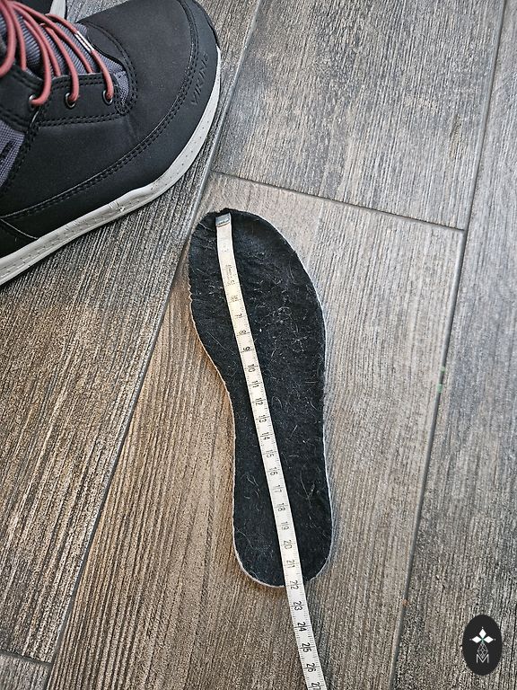 Insole: 26.5 cm. Labeled as size 41, but it's more like size 40. The toe area is narrow, so it's more suitable for a narrower foot.