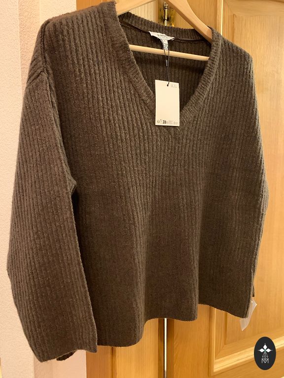 Very soft and warm sweater for everyday use. Feels like wool, but is made of recycled polyester, wool, elastane. Photo for reference. Length 64cm, underarms 60cmx2.