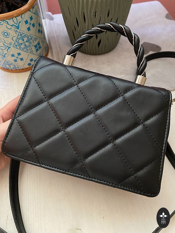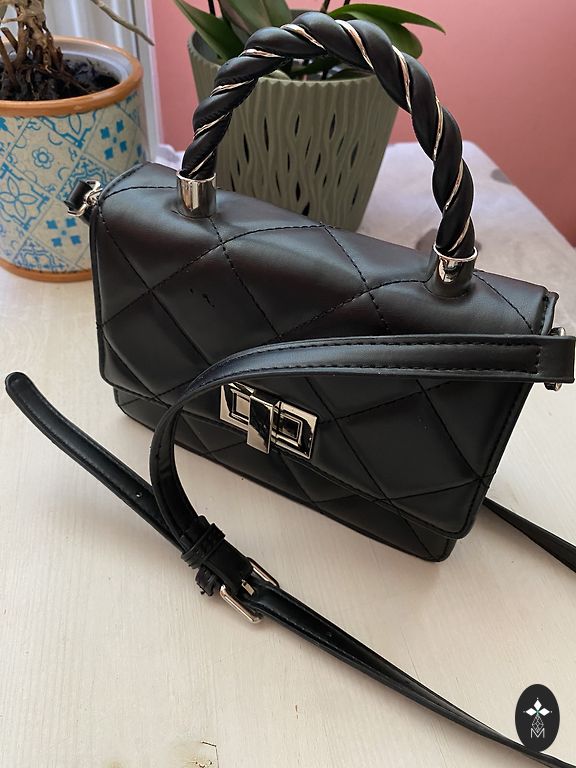 Užpakalinėje rankinės pusėje taip pat yra skyrius/kišenė be užtrauktuko. Diržas reguliuojamas.