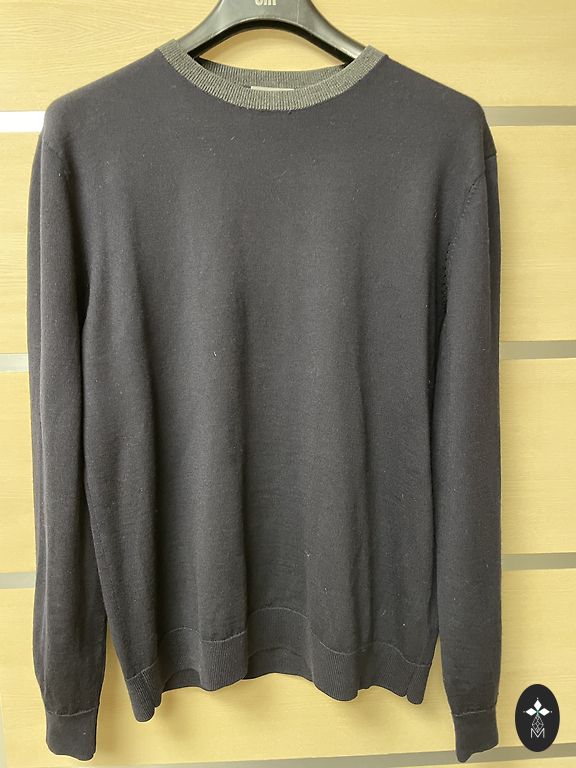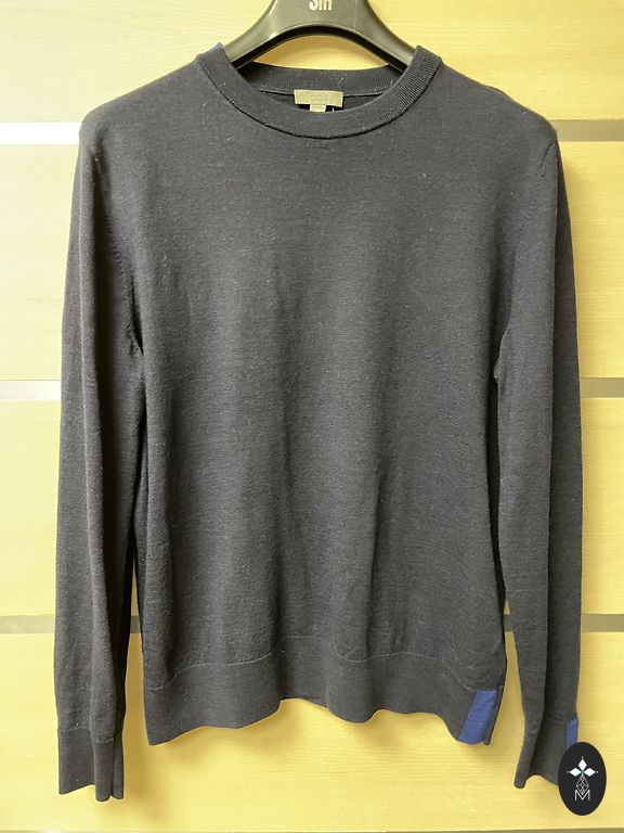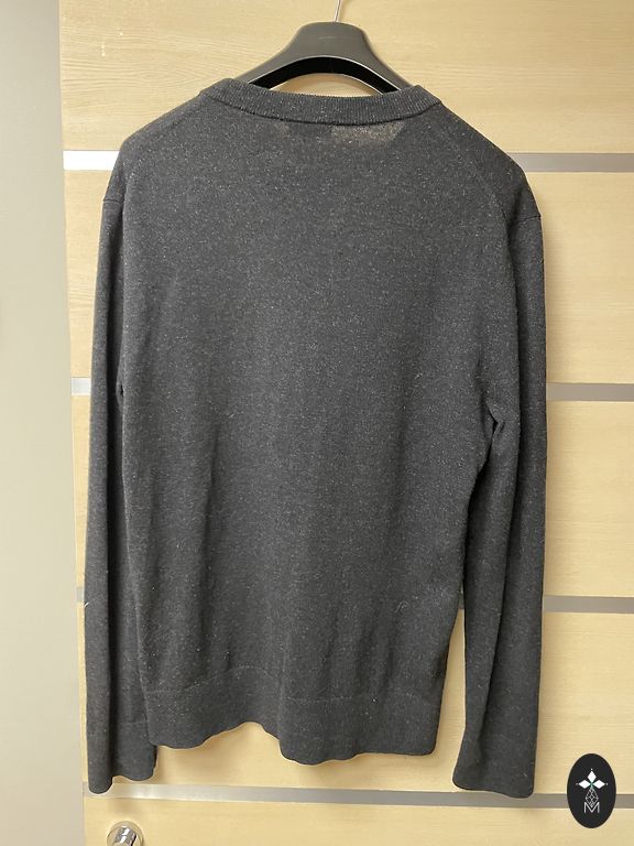 An exceptionally high-quality Thom Browne wool and mohair blend sweater with the brand's signature stripes. Missing neck tag with the brand name. Size 4, which according to the Thom Browne size chart corresponds to XL. Now the husband wears L (was XL), it's loose for him, but the sleeves need to be rolled up. Dimensions: Length 67 cm, from armpit to armpit 60 cm, waist ~112 cm. Shoulder width 49 cm, sleeve length from shoulder seam 69 cm, shoulder 14 cm, sleeve width 36 cm. Delivery is not included in the price. I send via DPD, Omniva, or Latvian postal parcel terminals according to the price list.