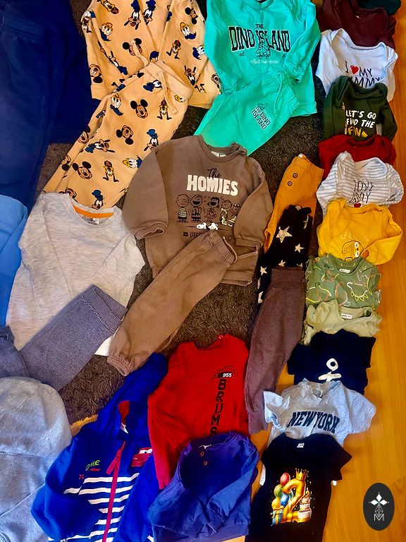 3 комплекта sinsay в отличном состоянии без пятен, соответствуют размеру 74/80, на мой взгляд, больше, но если ребенок более стройный, подойдет 80+.