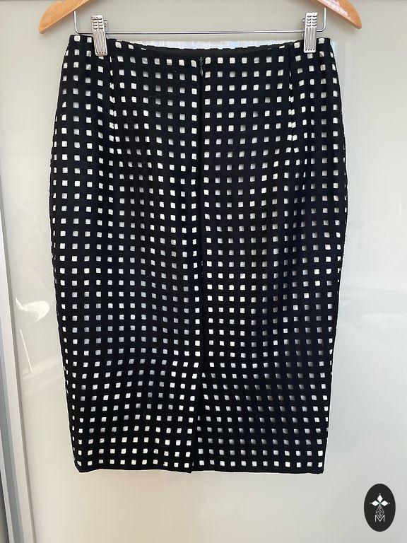 Tikitud siidkangas voodriga. Ilma vööta. Tõmblukuga. Dekoratiivne tüllääris. A ehk kellukese (poolringi) siluett. Väga hea välimus. Lisaks postikulud. Vöökoht 45×2, puusad 55×2, pikkus 52, tülliga 56. Kangas ei veni.