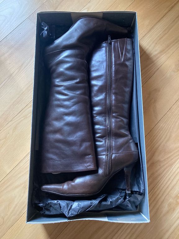 Prabangūs batai. Karamelės spalvos. Pirkti Patti parduotuvėje. Turėjau išeiginius batus. Blauzdoje 19cmx2. Galima gauti už 10.00 priderintą zomšinę rankinę. Plius pašto išlaidos.