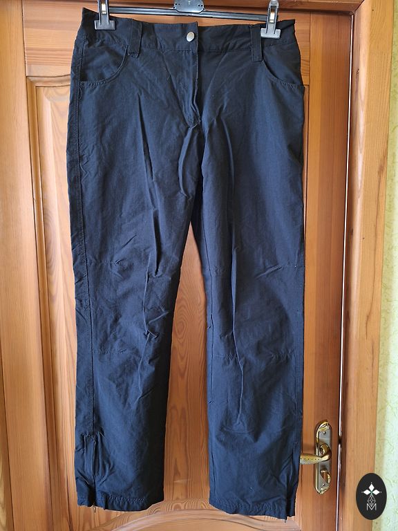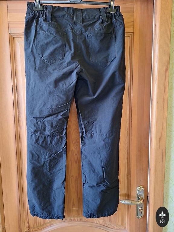Универсальные брюки для влажной погоды (подходят для всех сезонов), активного отдыха или прогулок, для сбора грибов, ягод, катания на коньках, лыжах и т.д., без утеплителя. Влагоотталкивающие, внутри скользкая полиэстеровая подкладка. Очень хорошее состояние, без износа. Средина фиксируется. Размер бирки 38/40. Длина 99 см, внутренняя длина 79 см, талия 41 см × 2, бедра 55 см × 2.