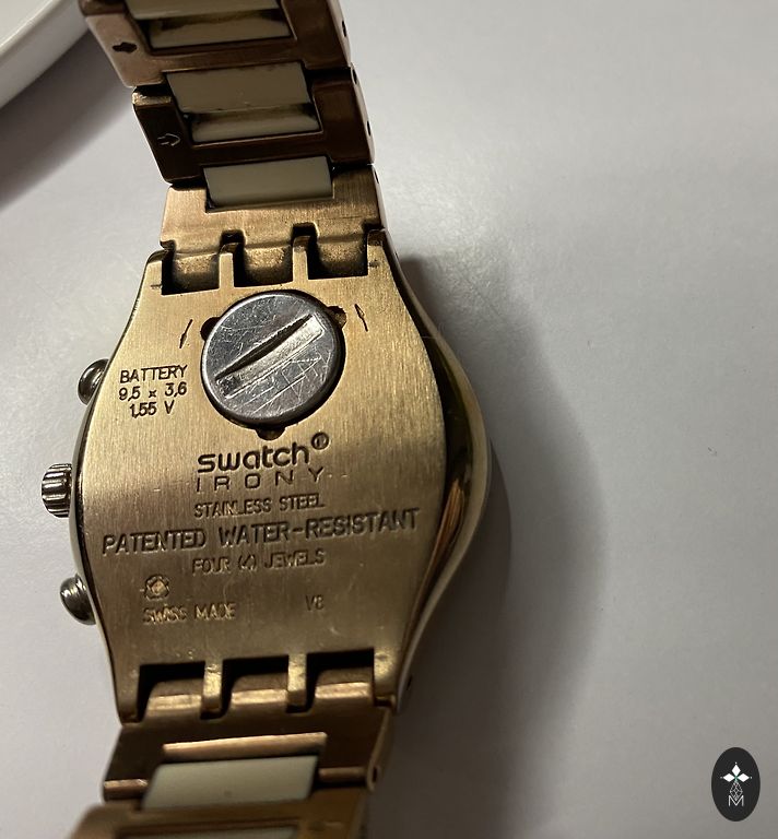 Розовое золото, нержавеющая сталь, хорошо работающие наручные часы. На батарейках. Длина дисплея 2 см, ширина дисплея 1,5 см. Цепочка сейчас скорректирована до длины 16,5 см, у мастера часов можно удлинить до 19 см. Есть признаки использования, но дефектов нет. Отправка через пакоматы +2€.