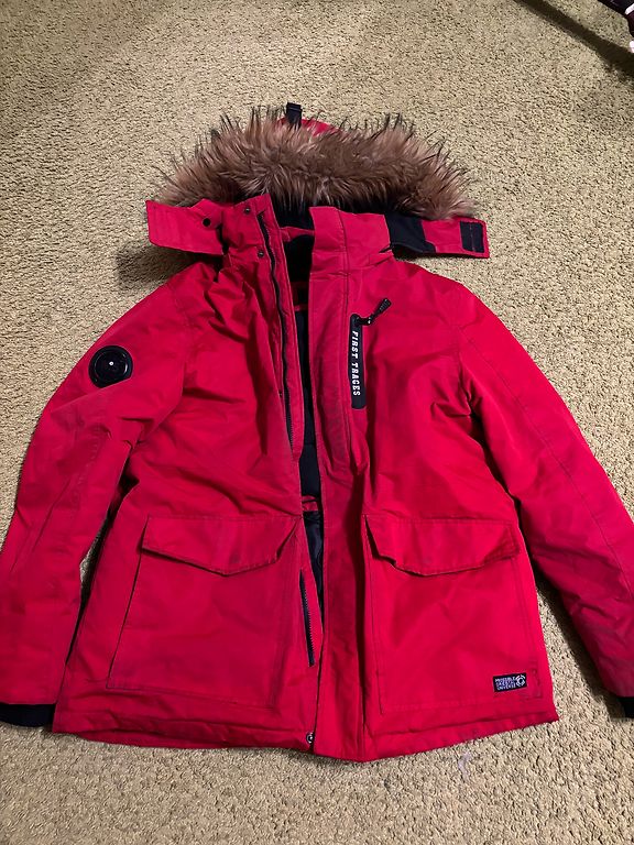 Много карманов, съемный капюшон, боковая молния. В очень хорошем состоянии, нет признаков использования. Незначительный дефект - одна шнуровка на молнии.