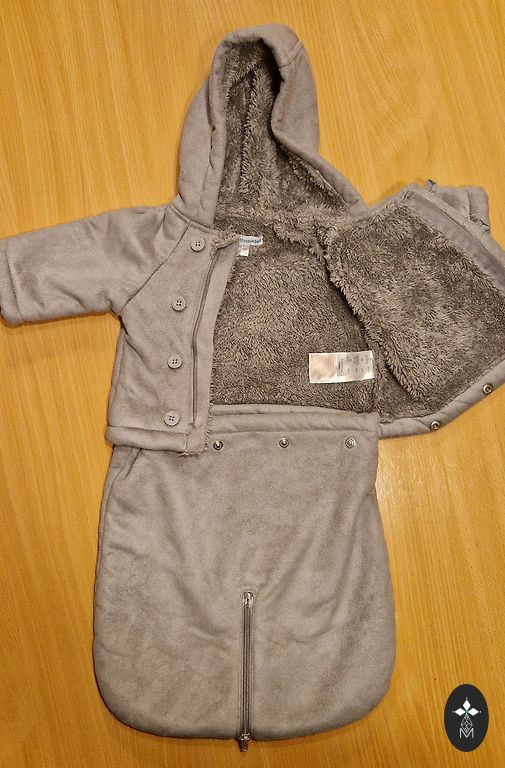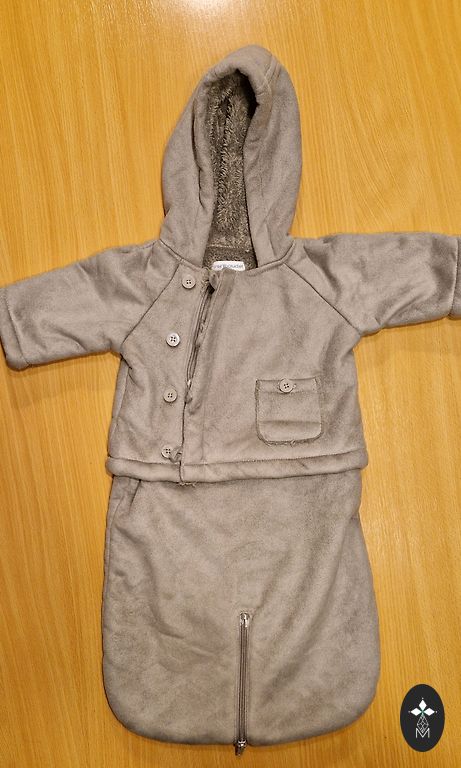 Nurodytas 80 dydis, bet sakyčiau, kad labiau atitinka 68/74 dydį. Dėvėtas tik kelis kartus vežimėlyje. + siuntimo išlaidos