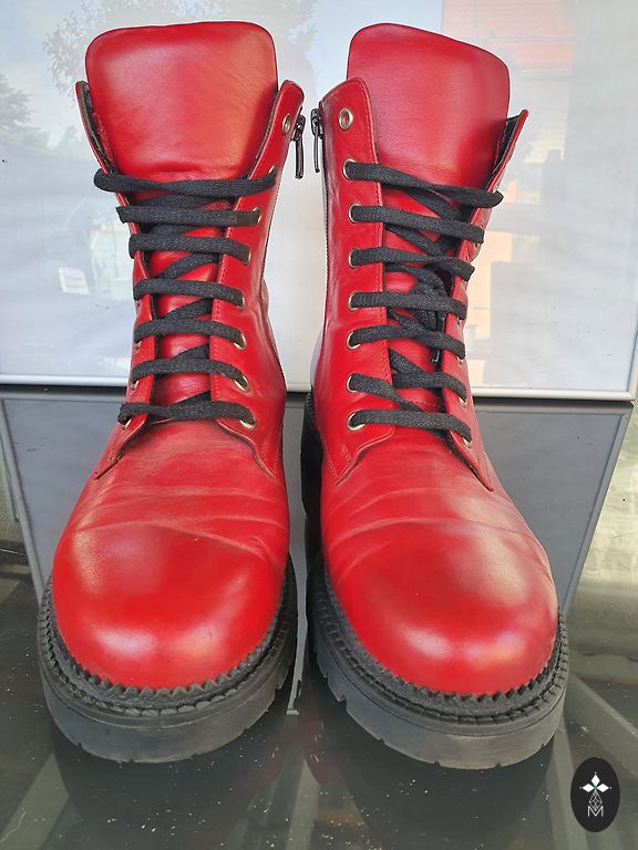 Comfortable boots made of genuine leather, standard size 39. The interior is lined with felt. The boots are in good condition, without holes or other defects. They show typical signs of wear, including creased leather and slightly worn soles. The boots have both a zipper and laces, allowing easy adjustment 👌🏻