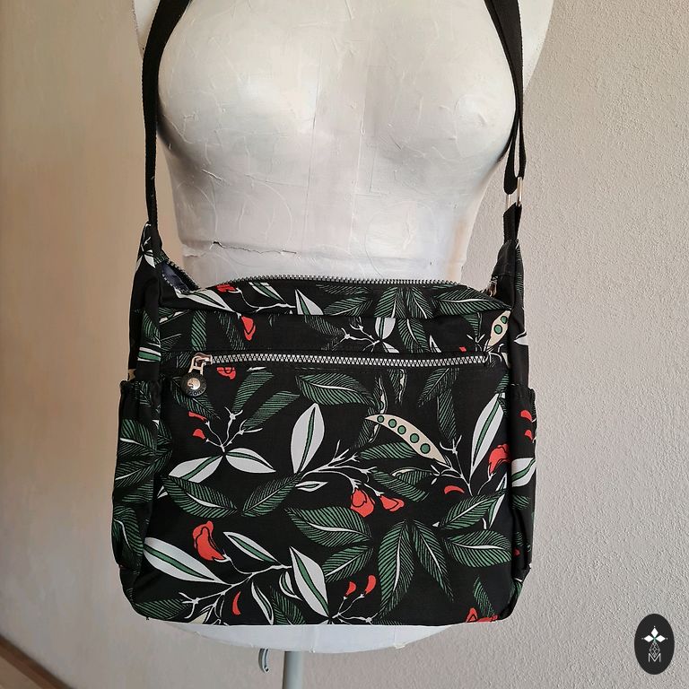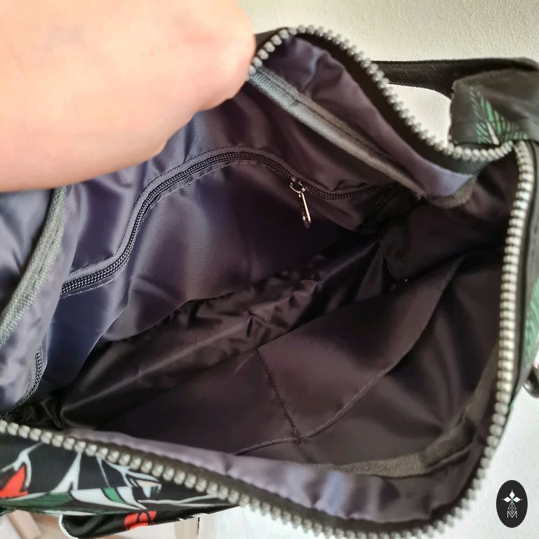 Karl Lagerfeld pečių krepšys - iš audinio ir odos. Krepšys yra erdvus ir papildomai turi užtrauktuką, kuris leidžia krepšį išplėsti. Yra vidinė kišenė.