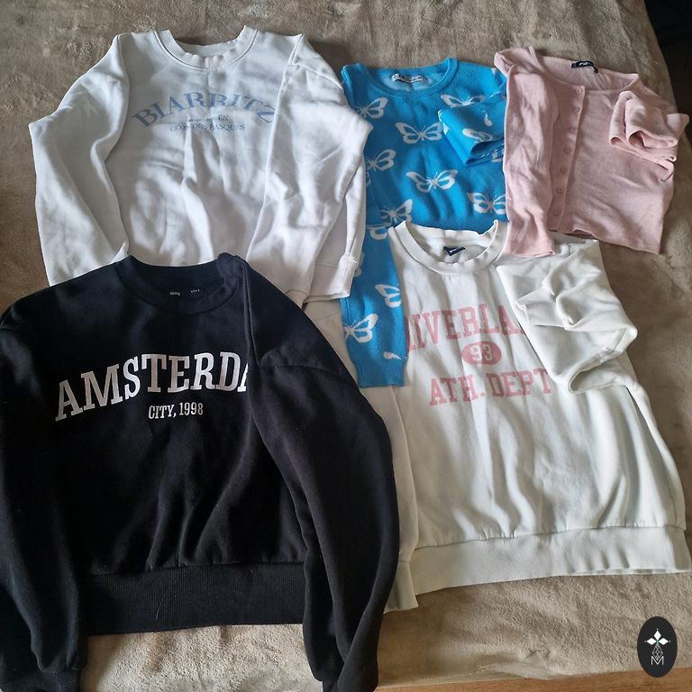 Komplekt tüdrukule - lühikesed püksid, T-särk ja jakk. Suurus on märgitud väiksem, tegelikult sobib tüdrukule suuruses 152.-158., särk on oversize, võib-olla sobib kauem. Reserved ja Pepco. Väga heas seisukorras, jakk on uus. Hind komplekti eest, ei jaga.