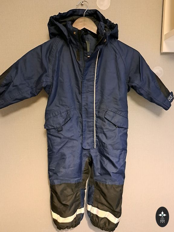 Washed. The fabric colors, reflective elements, Velcro, snap buttons, and zippers are excellently preserved. The child's name is mentioned inside the jumpsuit, which could not be cleaned off (see photo). The child wore it up to size 134.