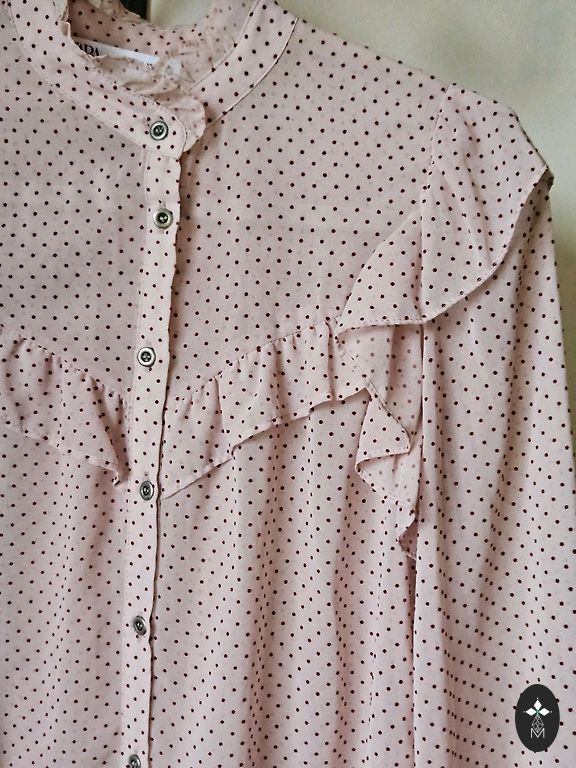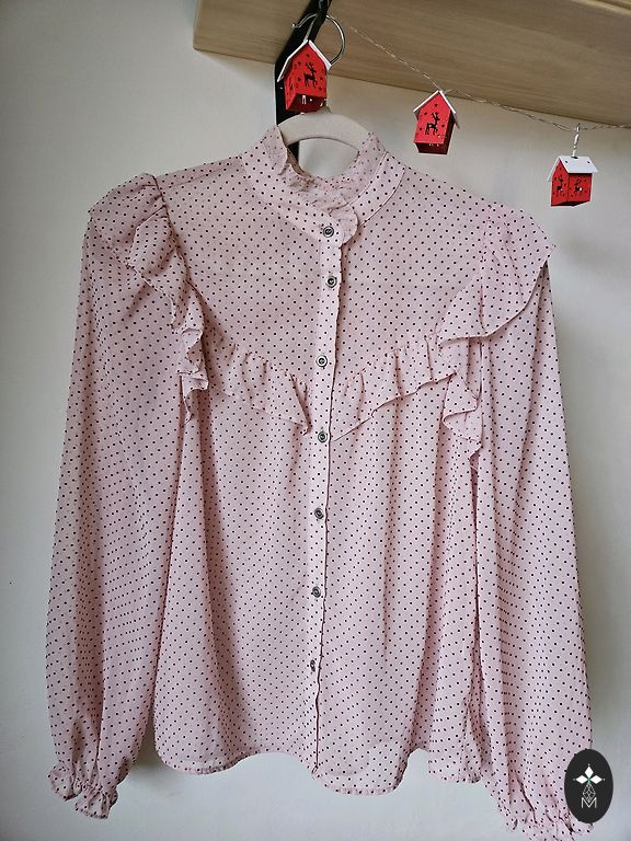 Siidine pluus, millel on huvitavad käised, rindkere kuni 116 cm, alumine äär kuni 114 cm, pikkus 60 cm.