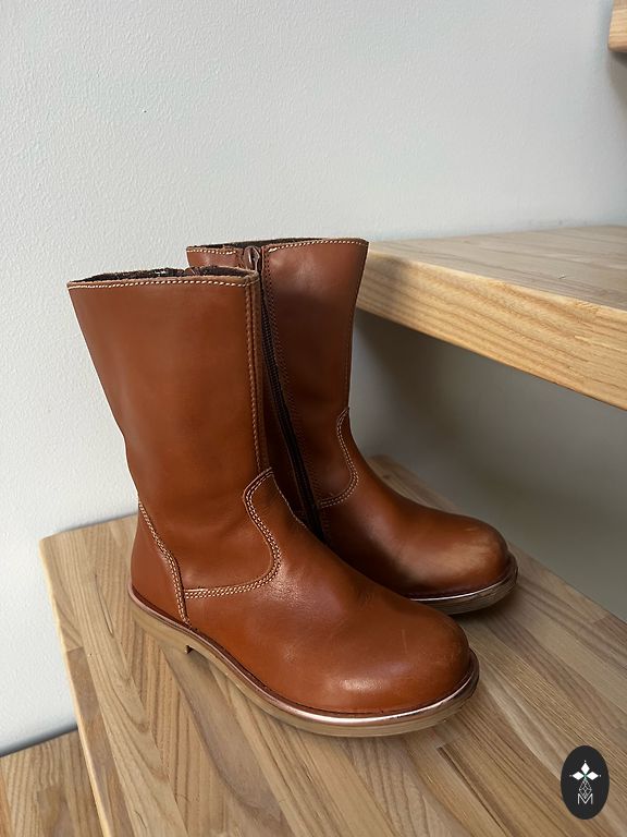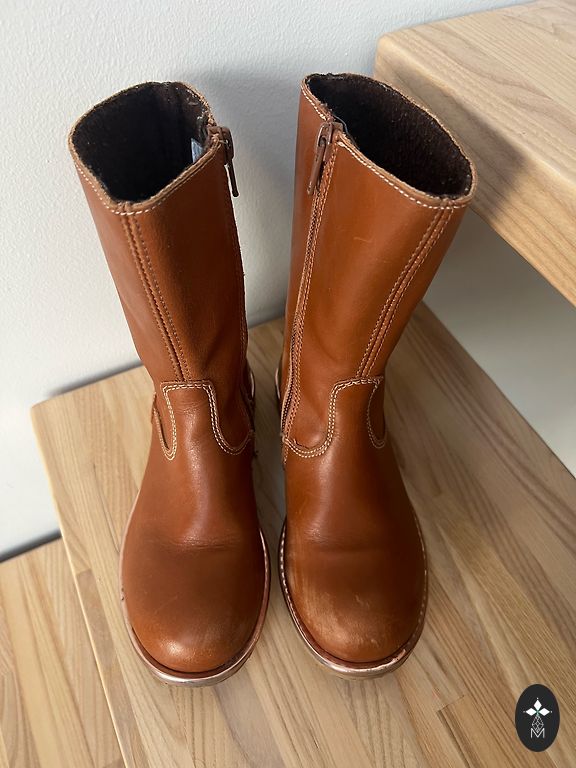 Great boots for our weather conditions - the lower part is rubberized, the upper part is made of leather, with camel wool interior lining. Feet always warm and dry. Bought new, used by one child.
