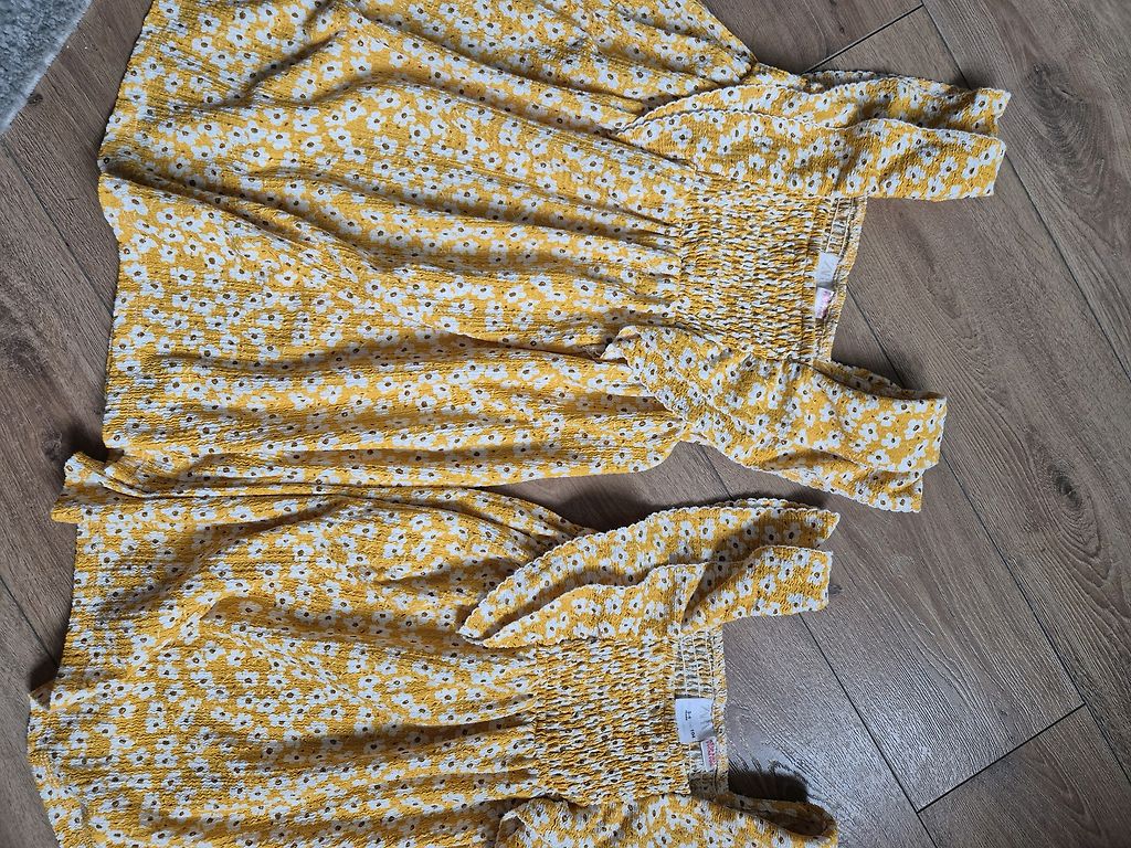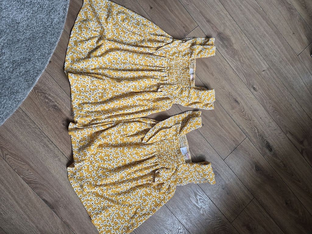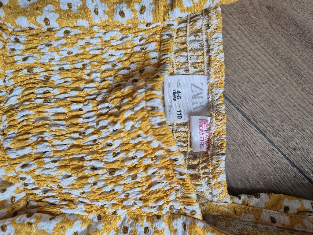 Golden chick🐥. Very fluffy with countless layers. Can dance small and large ballroom dances. Color, between gold and extra strong yellow. Condition excellent. I don't understand children's sizes🤨, dress length 63 cm, waist 30 cm. Thinking for 3-4 tables.
