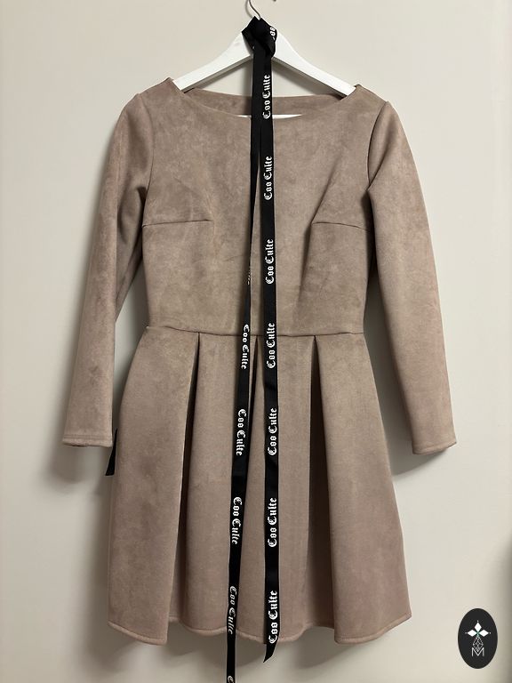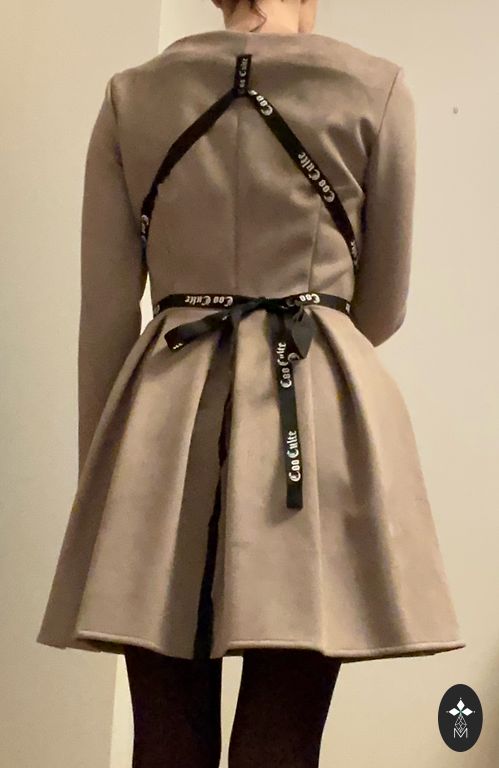 Elastingas audinys. Siūta pagal užsakymą. Yra diržas iš tos pačios medžiagos.