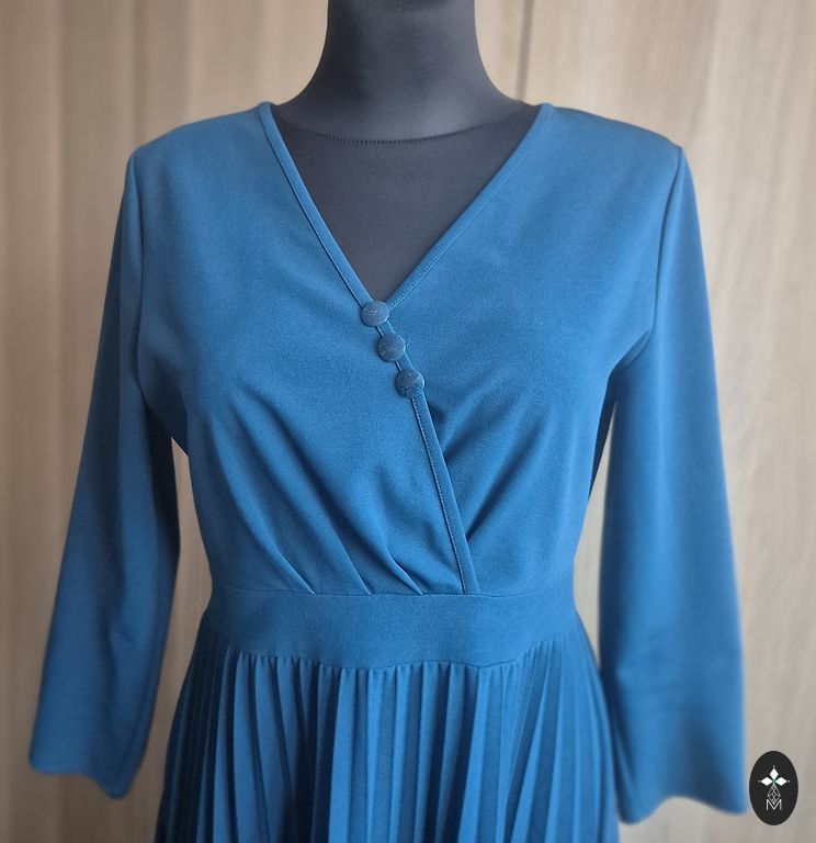 Есть место для пояса, васильковый оттенок.