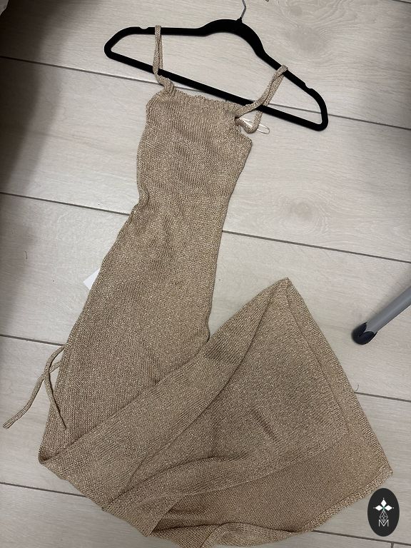 Uus musta värvi õhtukleit koos šampanja värvi libiseva satiinalusega kleidiga. Tegelikult 2 kleiti ühes. M suurus. Kleidi pikkus 134 cm, kaenlaaugust kaenlaaugu 44 cm, talje 38 cm, varrukas 62 cm.