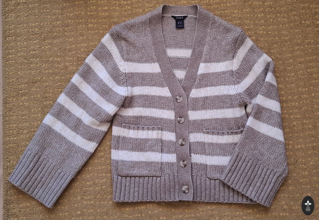 Warm, soft LINDEX wool mohair cardigan. Relaxed fit. Composition includes 46% wool for warmth and 8% mohair for fluffiness. The cardigan is fluffy, which is not clearly visible in the picture. Size indicated as L. Length 65cm, chest ~56cm, the cardigan is open and adapts to chest size. The cardigan has been worn 2x and is in new condition.