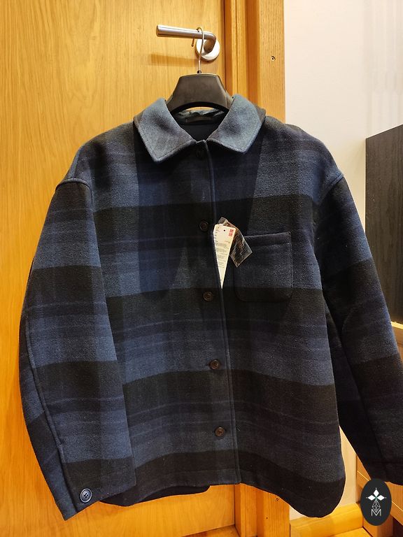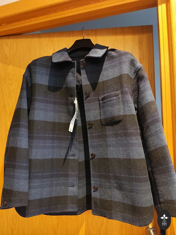 Tamsiai mėlyna kasdieninė striukė su užtrauktuku ir spaudėmis.