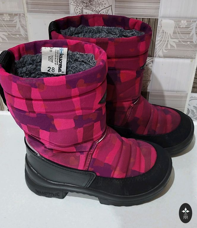 Ziemas stilīgie visurgājēji - ne reizi nebija slapjas kājas vai sūdzības par aukstumu. Ražotāja izmērs 32 eu, taču reāli uz 30 izmẽru. Uz rozā auduma nedaudz redzamas svītras no izžuvušā mitruma. Varbūt var cītīgāk iztīrīt, bet neesmu mēginājusi.