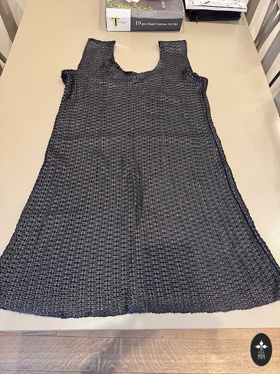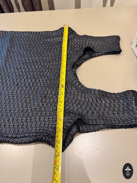Size 46, short sleeves. Length 88 cm. Chest 112 cm, slightly elastic. Composition 95% polyester, 5% elastane. Made in Poland.