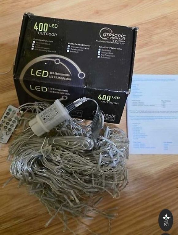 New 40 GB Christmas tree candles with holders, operate with a thick finger battery (not included), adjustable with a remote control, various brightness levels, timer. Cheap price, only 13 euros.